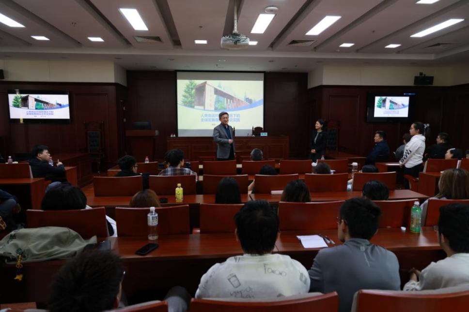 2026 年 4 月 23 日下午,前驻中非共和国特命全权大使陈栋在外交学院沙河校区主讲题为《人类命运共同体理念下全球发展倡议之外交实践》的思政专题大课。学校专职党委副书记周莉主持本次活动,国际经济学院全体大二学生及国际经济学院、马克思主义学院教师代表共同到场聆听。