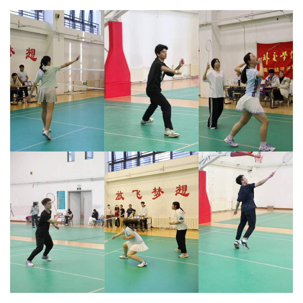 活动现场气氛热烈非凡,酣畅淋漓的对战引得现场观众连连欢呼。选手们以十分饱满的热情投入比赛,秉持着敢拼敢超的体育精神,在羽球赛场全力以赴,既彰显了国经学子的蓬勃朝气,也亮出了精湛的羽毛球技艺。与此同时,工作人员也在赛场周围辛勤忙碌,保障比赛有条不紊地进行。