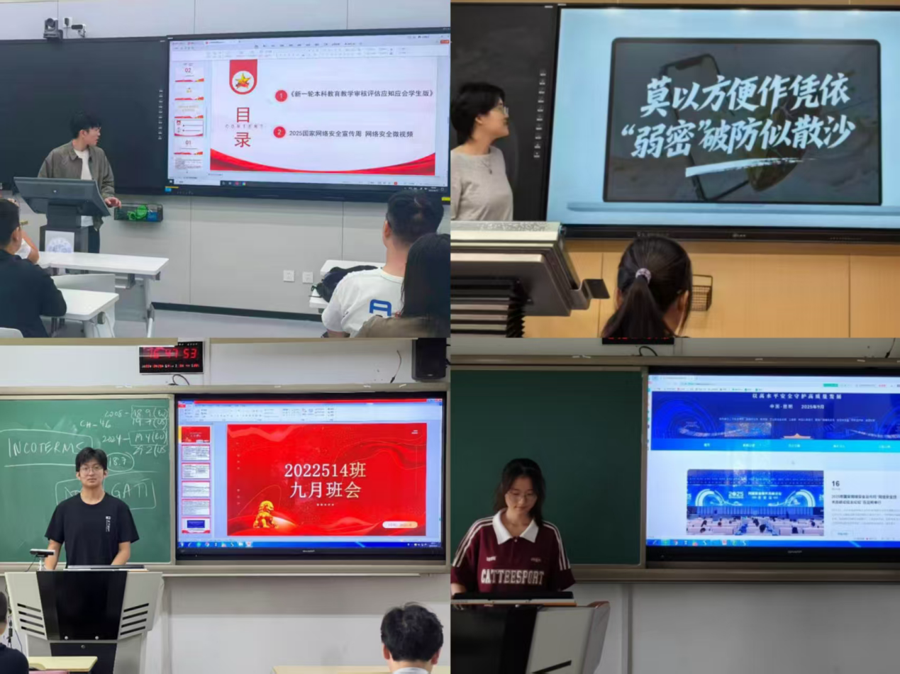 为深入贯彻党的教育方针,全面落实立德树人根本任务,深化学生对新一轮本科教育教学审核评估的认识,筑牢网络安全防线,国际经济学院于2025年9月组织各班级开展“本科教育教学审核评估应知应会”与“国家网络安全宣传周”主题班会。
