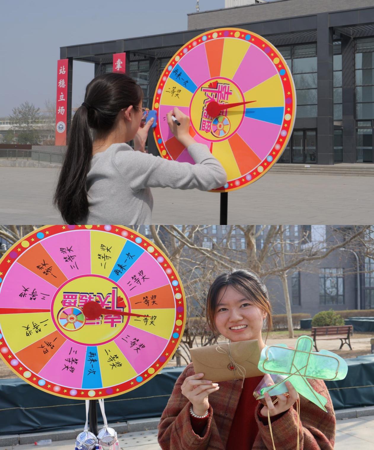 游园会入口处,同学们接过集章卡,兴致盎然地投入小游戏,集齐三枚,或驻足观赛王者荣耀,即可换得一次抽奖机会。抽奖处前笑语轻扬,大家在游戏与观赛间自在穿梭,为春日校园增添几分热闹与欢喜。