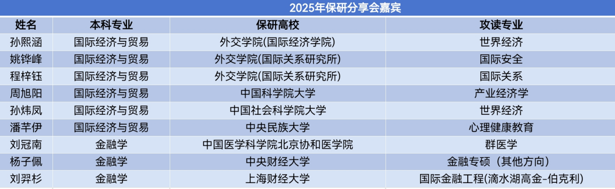 在分享会上,学长学姐们将自身的经验与经历细致认真地传承给了自己的师弟师妹们,为与会同学提供了宝贵的“一线”经验与方向指引,深刻体现了国际经济学院“传、帮、带”的优良传统。三个小时满满干货的保研经验分享会不仅为同学们指明了生涯发展的方向,还解答了同学们对于当下和未来的疑惑,鼓舞同学们更有信心地朝目标迈进。
